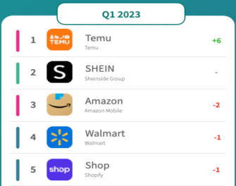 在SensorTower公布的2023年第一季度App下载榜单中,Temu位居第一,SHEIN紧随其后,而美国本土电商亚马逊、沃尔玛、Shop(Shopify)位列三至五位。